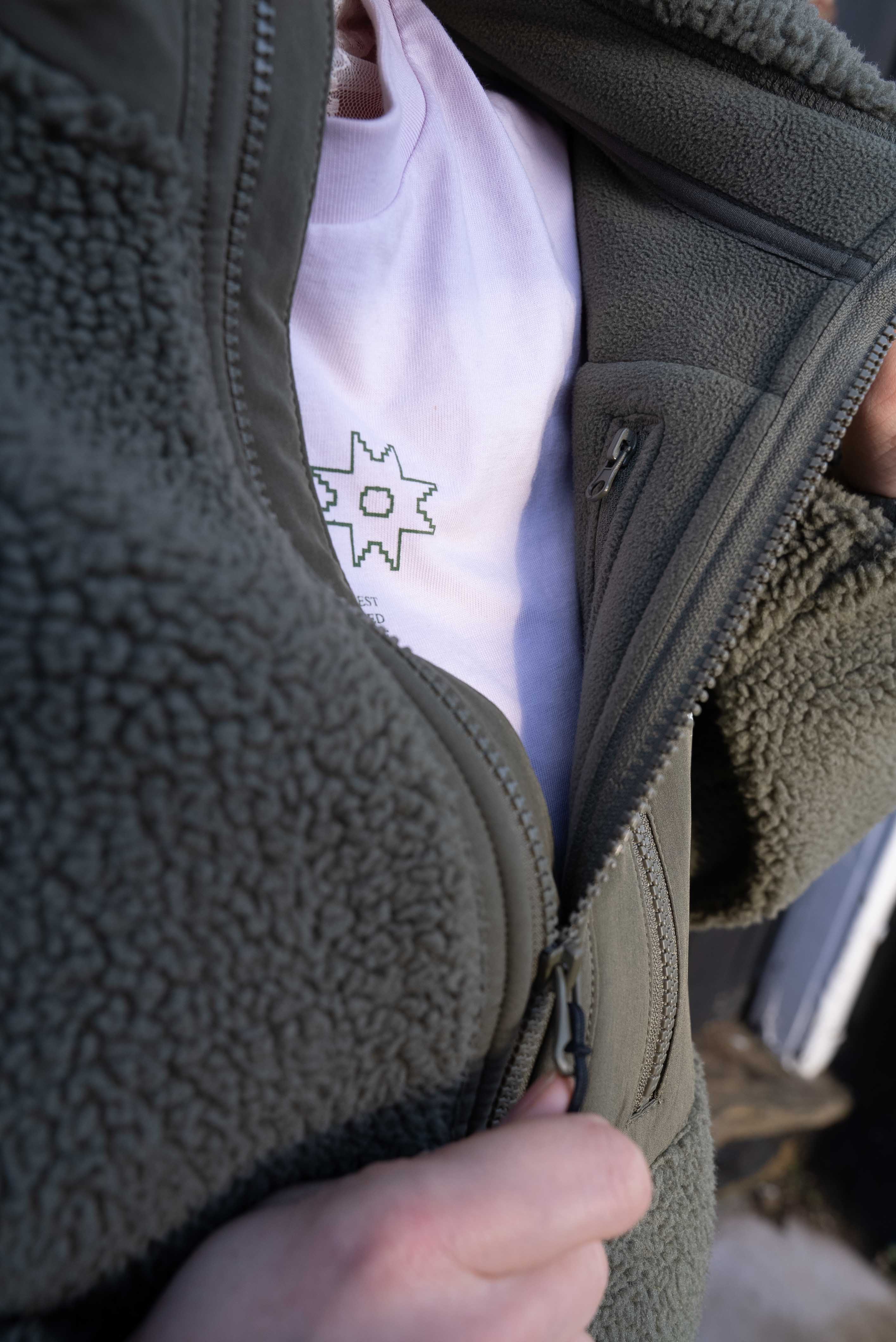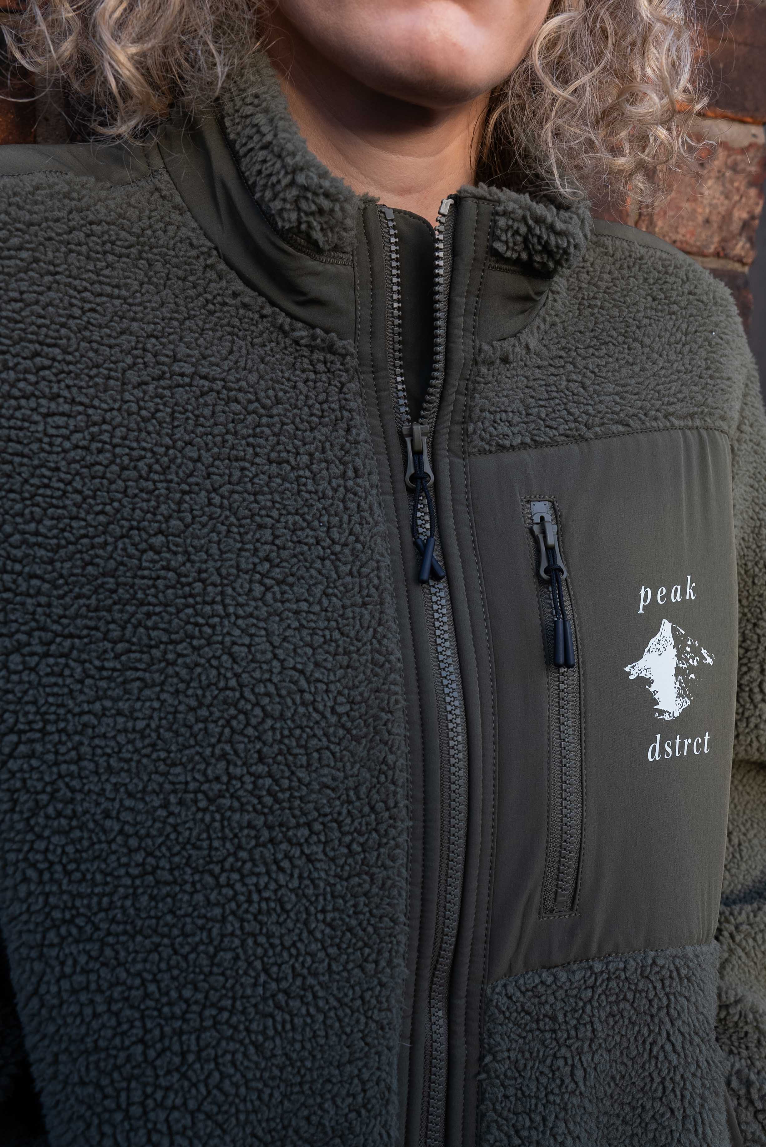 prfct for a day in the hills, the peak dstrct sherpa fleece in khaki, ft. parkhouse hill design.