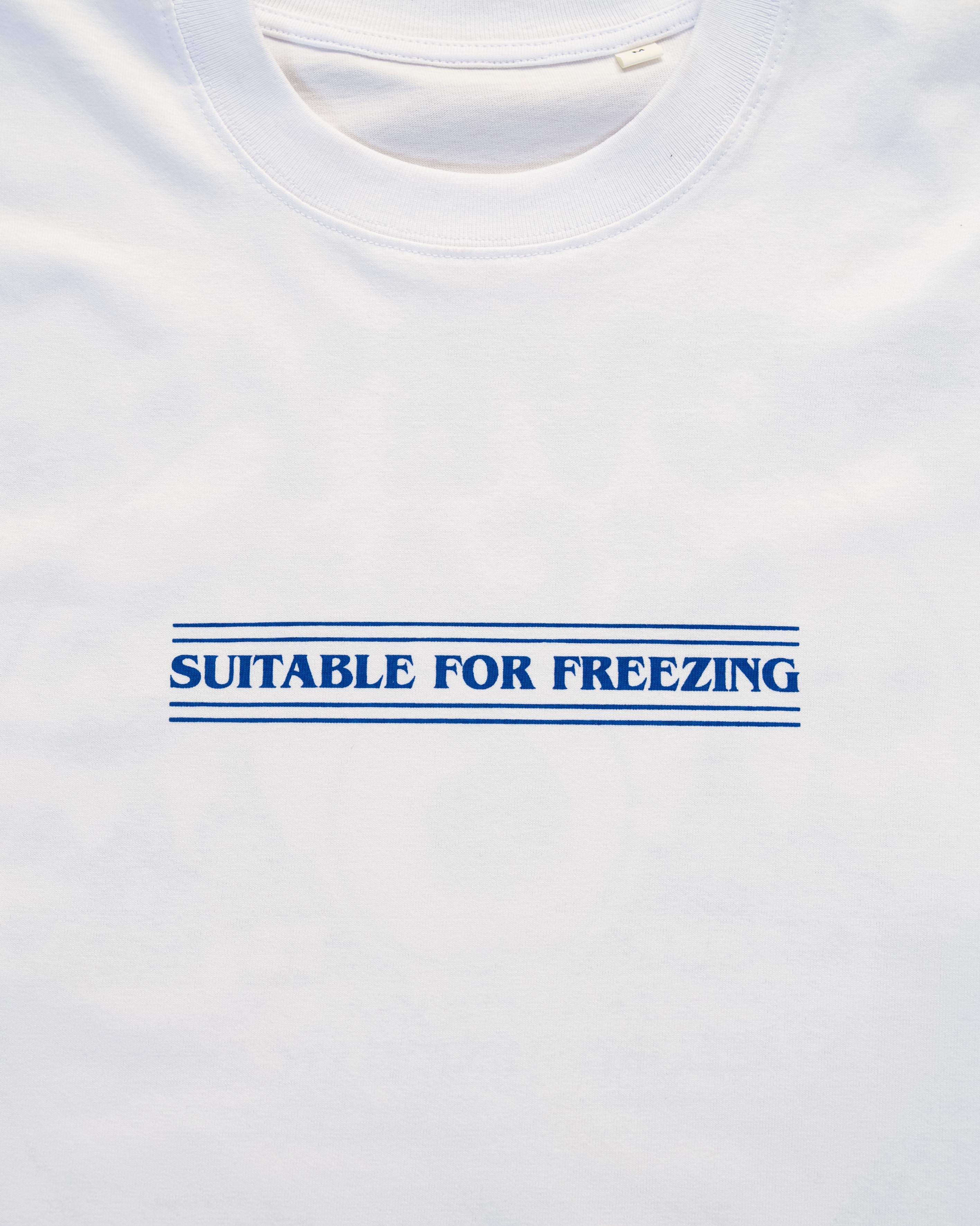 we liked povey's so much we printed the pack straight on to a tee shirt with a clear reminder they are, indeed, suitable for freezing.